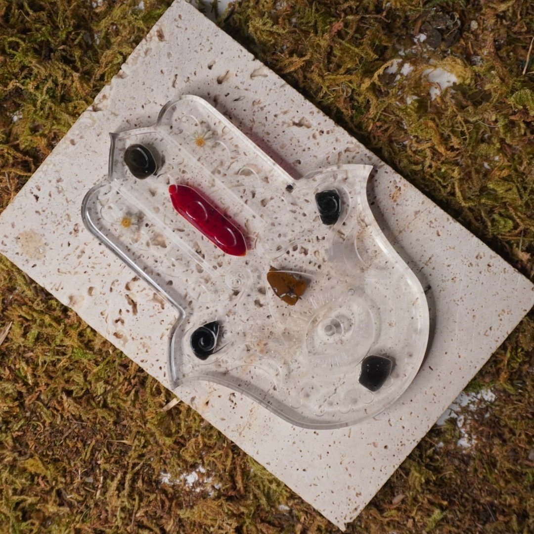 Plateau en résine en forme de Main de Hamsa, symbole de protection et d’énergie positive. Parfait pour accueillir encens, cristaux, bijoux ou petits objets sacrés, il apporte une touche mystique et apaisante à votre espace.